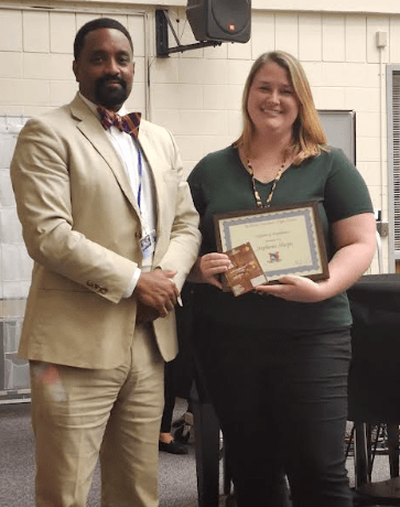 Ms. Sharpe (on the left) is RNE’s Culture of Excellence recipient for October. According to Mrs. Fowler, Ms. Sharpe consistently exhibits excellence in the classroom, motivates and encourages students, faculty, and staff, serves as a leader in the classroom and throughout the school, and demonstrates the importance of civic responsibility by being active in the community or other service organizations.