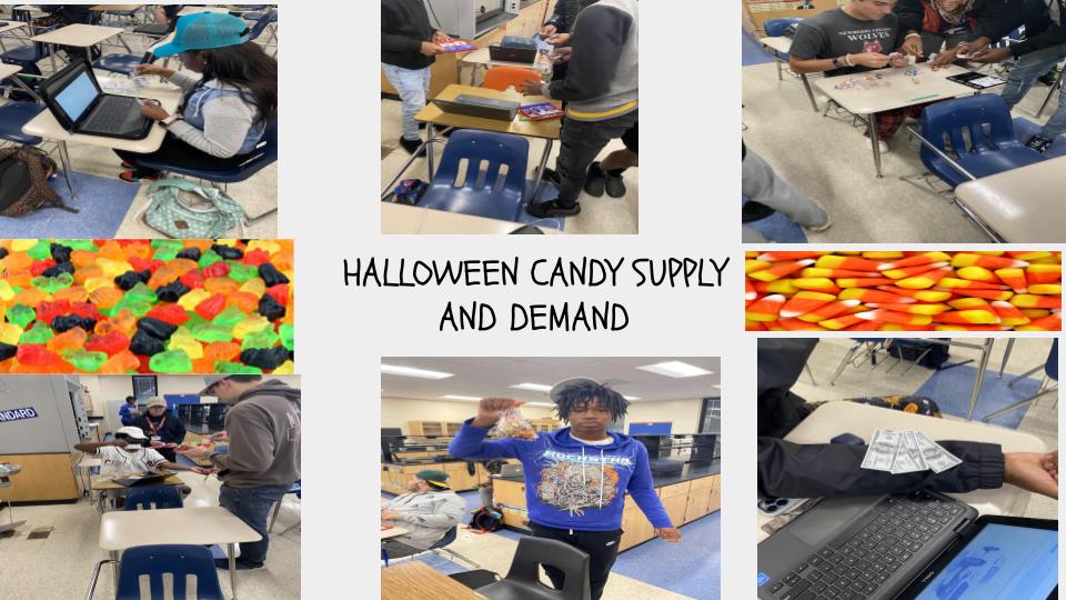 Mr. Butler’s Economics class participated in a real-world lesson on Supply and Demand got a little interesting. Some of his students got rich (paper money) selling Halloween candy to any and everybody. Even Mr. Butler, their teacher, was not excluded from this activity and had to purchase candy from one of them.