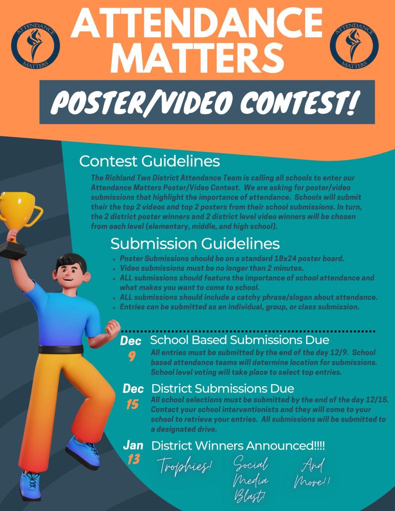 Click the image to submit your videos. You must use your Richland 2 email account to assess the submission folder. All poster submissions should be taken to the Attendance Office.
