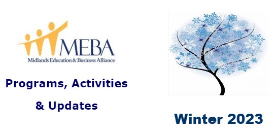 The Midlands Education & Business Alliance (MEBA) is offering a series of webinars this week and in February. The first is on January 27th at 10 AM. This is a virtual program designed to connect industry, community, and education partners to students, parents, and educators around college and career readiness topics. Their feature presentation will focus on “Trending Careers in the Midlands and SC” and will be presented by Ms. Wylondria Jefferson, Workforce Outreach Coordinator with the South Carolina Department of Employment and Workforce. Registration is required, so please click on the image to register.