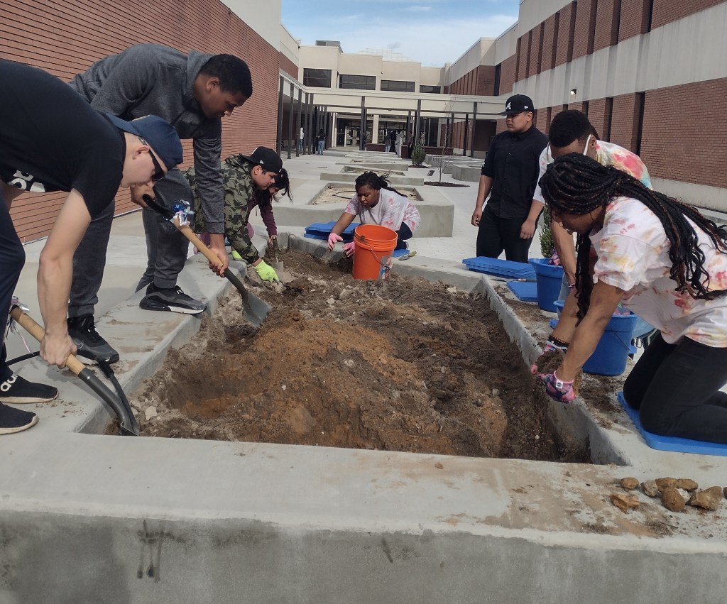 Yes, renovations to Shakespeare Garden are happening. First step, digging out the trash in the planters. Hopefully, we will start the 2023-2024 school year relaxing and enjoying a beautiful scenery. We can’t wait. Thanks goes to Ms. Norris-Jones’ students for taking on the challenge.