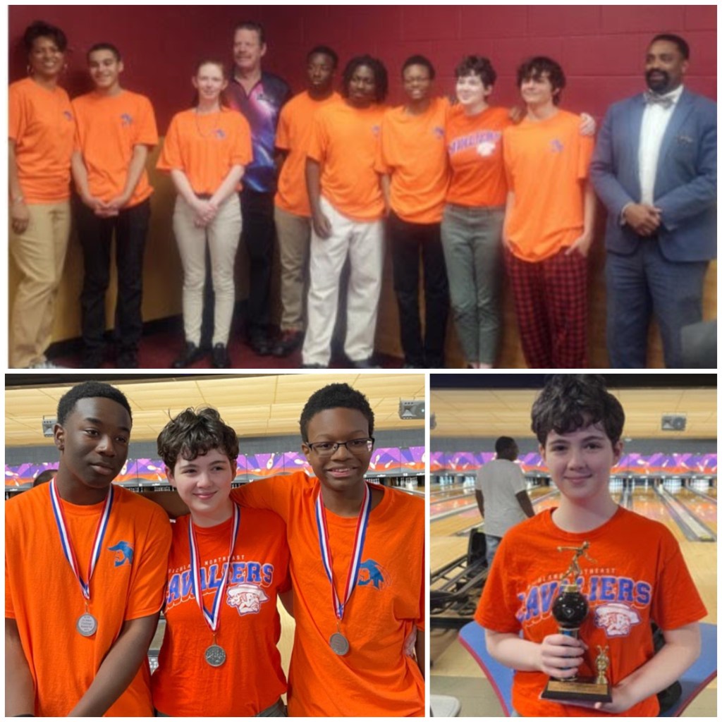 Congratulations to all members of the RNE Varsity and JV bowling teams. Our JV team won 2nd place in the Baker Challenge finals against Airport High School. Abigail Robillard also won an individual award for Female High Series Score. Varsity Team members include Katelynn Daniels, Will Anthony (AJ) Jamison, and Adam Williams, . JV Team members are Austin, Brown, Jarrod Manning, and Abigail Robillard.