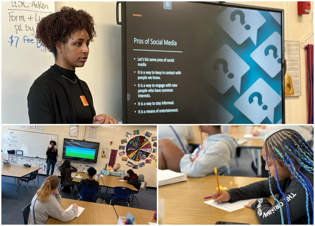 Black Law Student Association member, Ms. Doe, visits our AVID students to inform them about social media and the law. She talked to them about the pros and cons of social media and how their posts can affect their future. If you want to learn more about our AVID program, please contact Mrs. Sansonetti-Wood (ext 79790 or msansonetti@richland2.org).