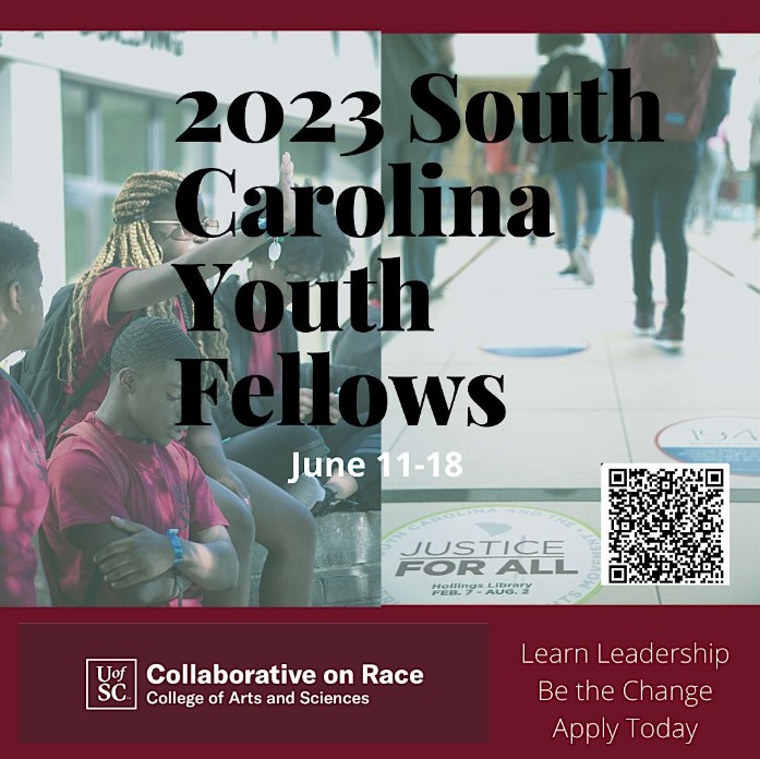 The South Carolina Youth Collective Fellows are social justice and civics-minded high school students from across SC. Students will participate in community-building exercises, learn civil rights history through activities and field trips, plan to lead a workshop on race and reconciliation, and learn how to plan and implement a project in their home community. Rising freshmen, sophomores, juniors, and seniors, are encouraged to apply. There are no fees. For more information, click the image or scan the QR Code.