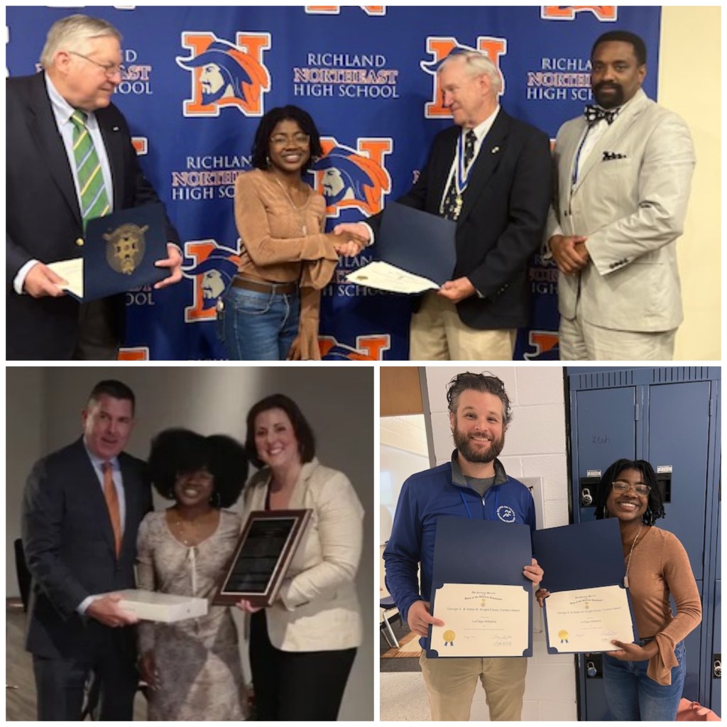 Congratulations to GEAR UP Class of 2023, La’Deja Williams. Not only was she the only student in South Carolina to receive a cash scholarship from the Sons of the American Revolution, she was also selected as the Midlands winner of the third annual Strong Men & Women in SC history student writing contest sponsored by Dominion Energy. La’Deja won a cash prize and a MacBook Air. Mrs. Sansonetti-Wood, our GEAR UP Coordinator, and La’Deja would like to thank Mr. Serafine for hosting his writing workshop for this scholarship in November for all GEAR UP students. Click the image above to read WACH Fox story.