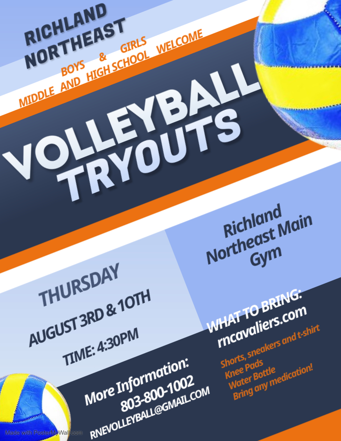 August 2, 2023 August 2, 2023July 31, 2023 Richland Northeast HS Volleyball Tryouts, August 3rd & 10th Attendance Matters… FREE Breakfast & Lunch @RNE Share this: Click to share on X (Opens in new window) X Click to share on Facebook (Opens in new window) Facebook Like Loading...