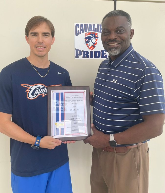 The South Carolina Athletic Coaches Association (@CarolinaCoaches) honored @RNEBBasketball Coach Jacob Lourie with the Outstanding Service Award for 20 years in Coaching! Congratulations and thank you for your service and dedication to the Richland Northeast community!