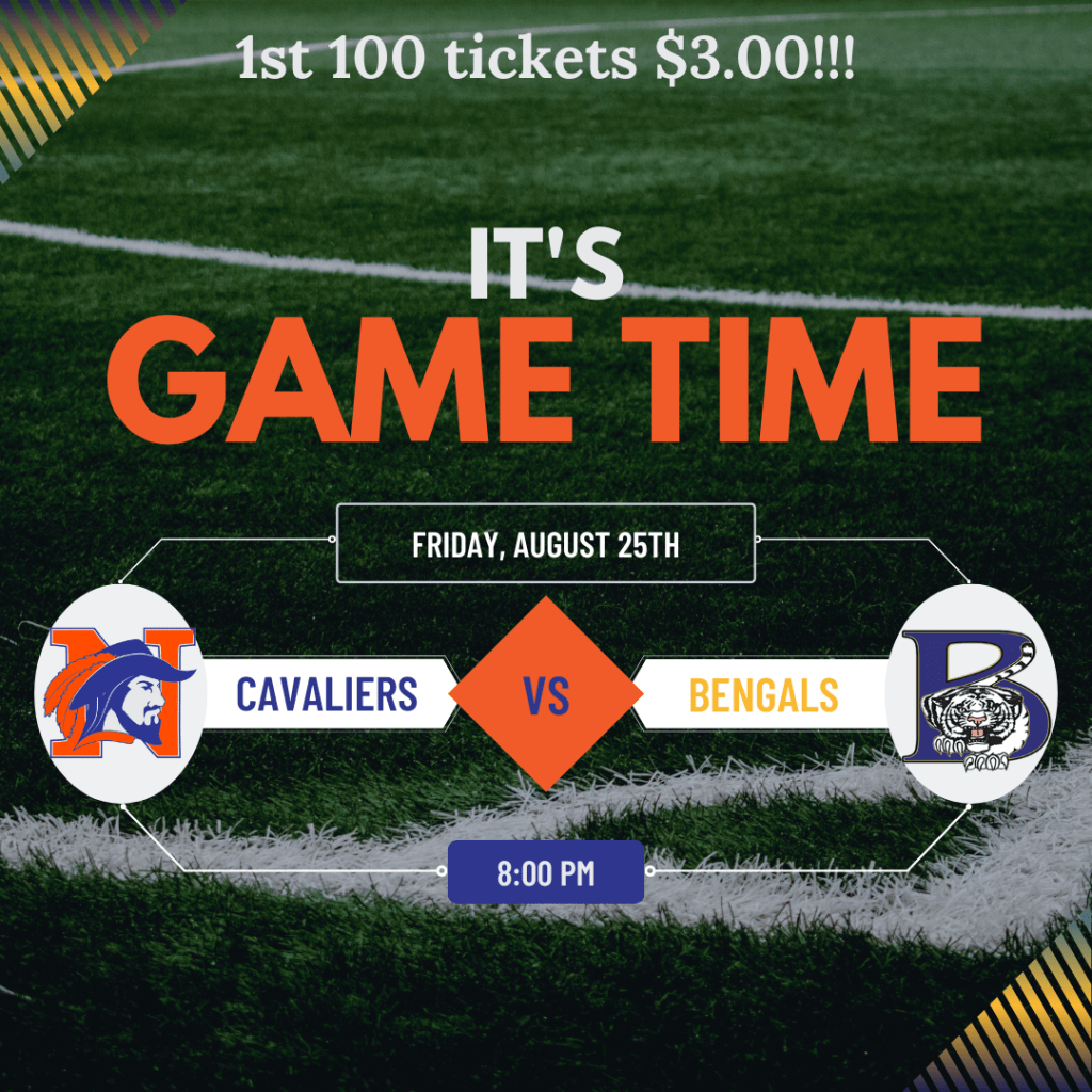 Don’t forget to show your school spirit — wear Orange & Blue and sit in the Student Section. Come Support Your Cavaliers as we battle on the field against those Bengals of Blythewood!