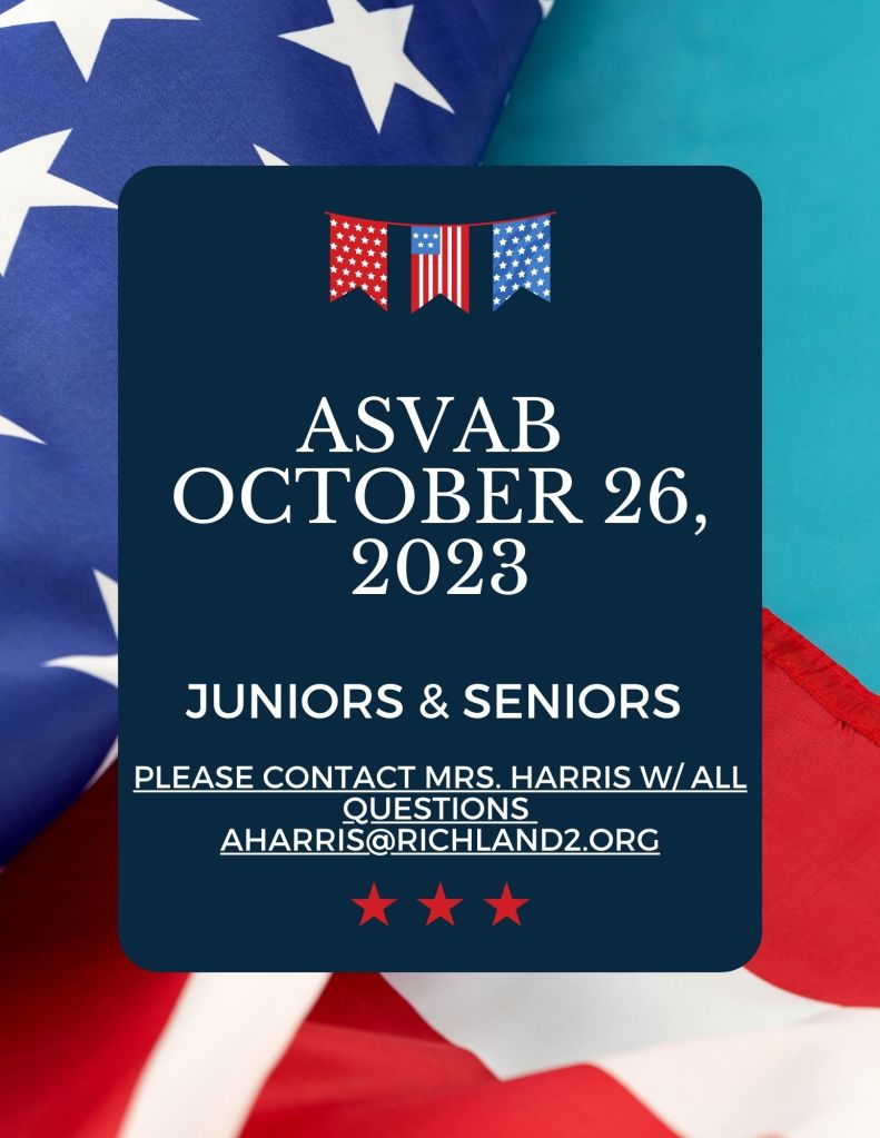 Remember only Seniors who have their CCR (College or Career Ready) certification can go off campus for lunch. Juniors, this also applies to you when you complete the application form. Taking the ASVAB does not mean you have to go into the military. This test resembles the ACT since it contains English, Math, and Science sections which are also on the ACT. A great way to predict your success on the ACT.