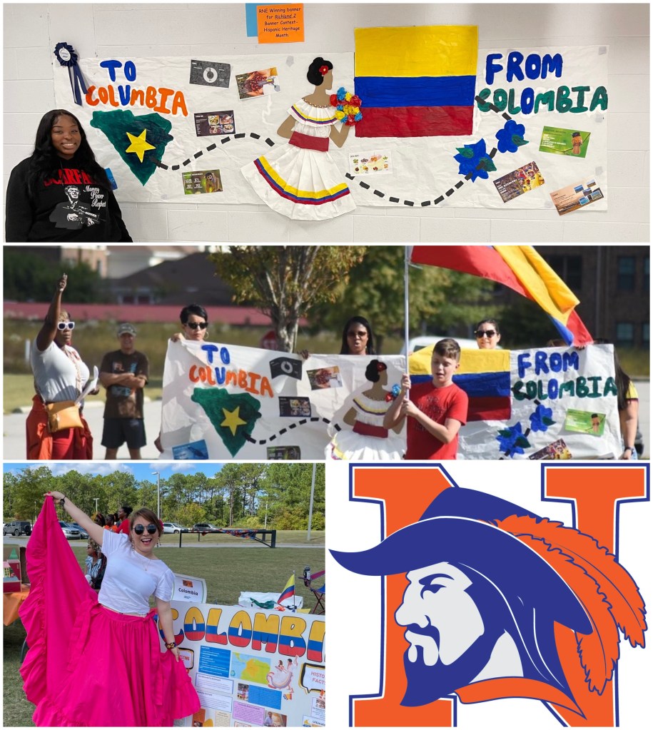 On October 7th, in celebration of Hispanic Heritage Month, Richland Two held the Parade of Flags at R2i2. Ten countries were represented by many Richland 2 schools, competing for the best banner in appearance, creativity, and originality. RNE, teaming with Summit Parkway Middle School, won the banner contest!! Thanks go to Student Government students, Reyonna Roseborough and Eden Hoffman. They designed our award-winning banner in approximately 2 days.