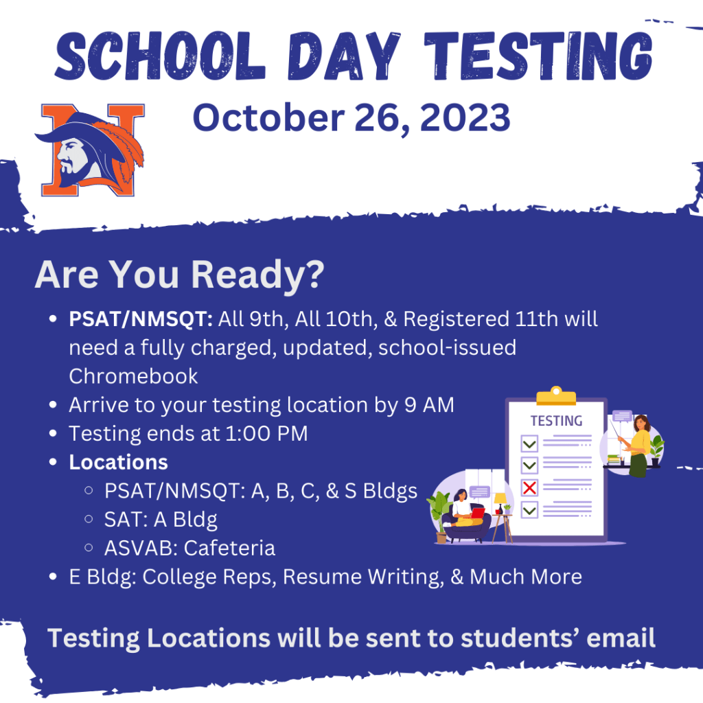 October 26, 2023 October 26, 2023October 26, 2023 Richland Northeast HS It’s School Testing Day!!! Click the image to locate testing rooms sorted by Student ID # 2023 Expo Approaching Share this: Click to share on X (Opens in new window) X Click to share on Facebook (Opens in new window) Facebook Like Loading...