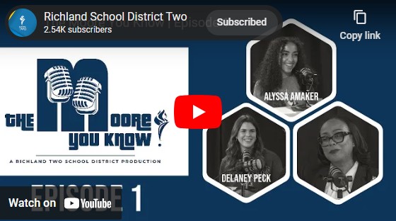 Richland Two produced a brand-new video podcast featuring Superintendent Dr. Kim Moore!ย For the first episode of The Moore You Know, two Richland Northeast High CavPlex student journalists flipped the script and interviewed Dr. Moore.ย They picked the questions, and the result was a candid conversation about school safety, school perceptions, dress code, and more. Check it out by clicking the image above or listen to the audio podcast on Spotify.