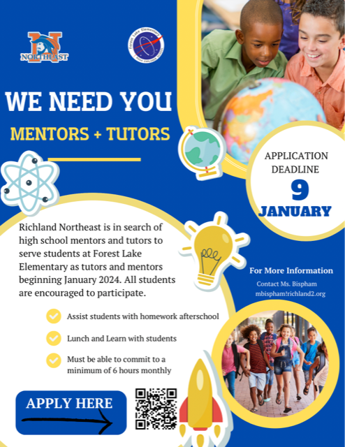 December 19, 2023 December 19, 2023December 13, 2023 Richland Northeast HS Interested in Mentoring/Tutoring at Forest Lake? Share this: Click to share on X (Opens in new window) X Click to share on Facebook (Opens in new window) Facebook Like Loading...