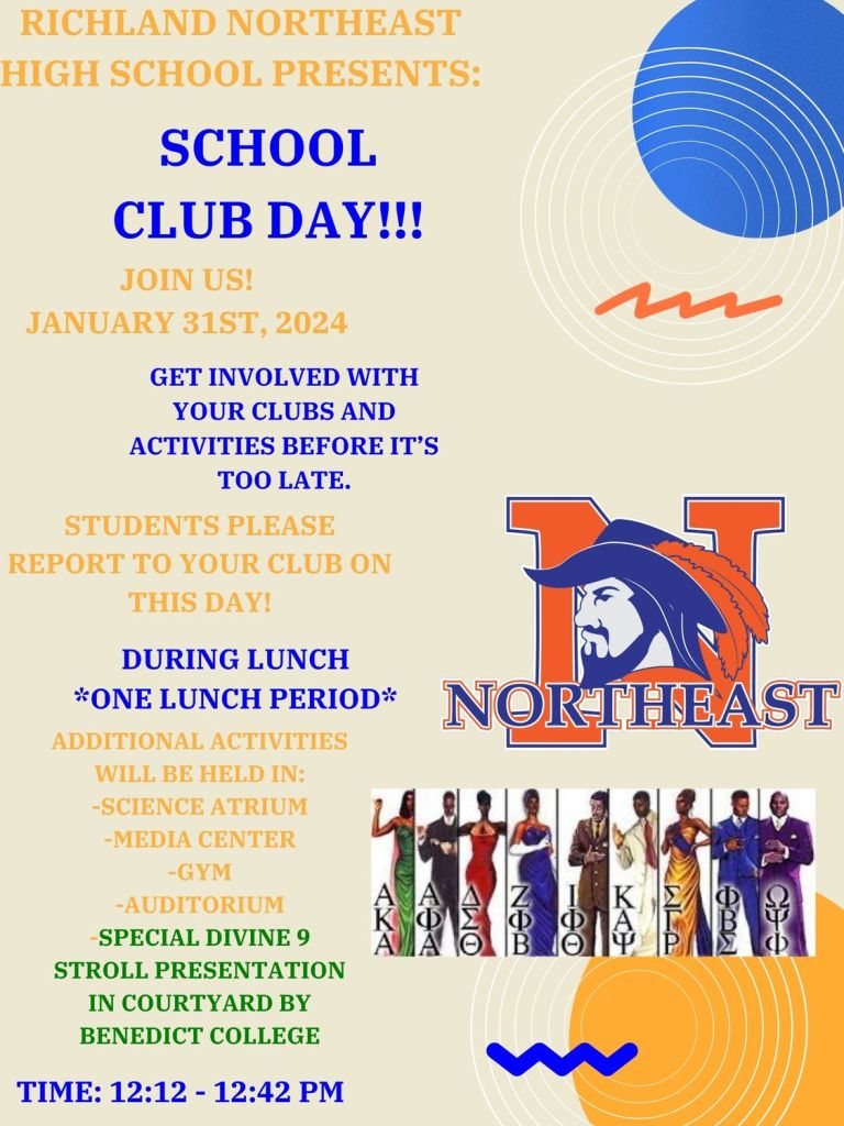 January 31, 2024 January 31, 2024January 30, 2024 Richland Northeast HS Rep Your Career Candyland in the Courtyard during lunch. Please check your email and click the flyer to follow RNE Student Government on Instagram! National Signing Day Next Week It’s Club Day Wednesday Mrs. Rodgers’ Featured on WIS Thank you Mrs. Rodgers for joining the fight against anti-Semitism and making sure our students are aware. Share this: Click to share on X (Opens in new window) X Click to share on Facebook (Opens in new window) Facebook Like Loading...
