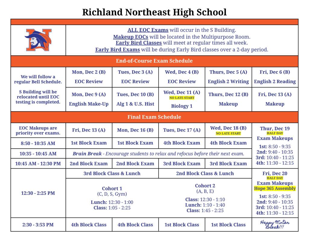 November 15, 2024 November 15, 2024November 15, 2024 Richland Northeast HS It’s Playoff Time – Round 1 Registration Ends TODAY!!! Fall Exam Schedule Please avoid scheduling any off-campus appointments during the our exams. RNE Athletics’ New Website RNE Athletics has a new website, new link, & now an App. Click on the flyer to access or Download the App. Share this: Click to share on X (Opens in new window) X Click to share on Facebook (Opens in new window) Facebook Like Loading...