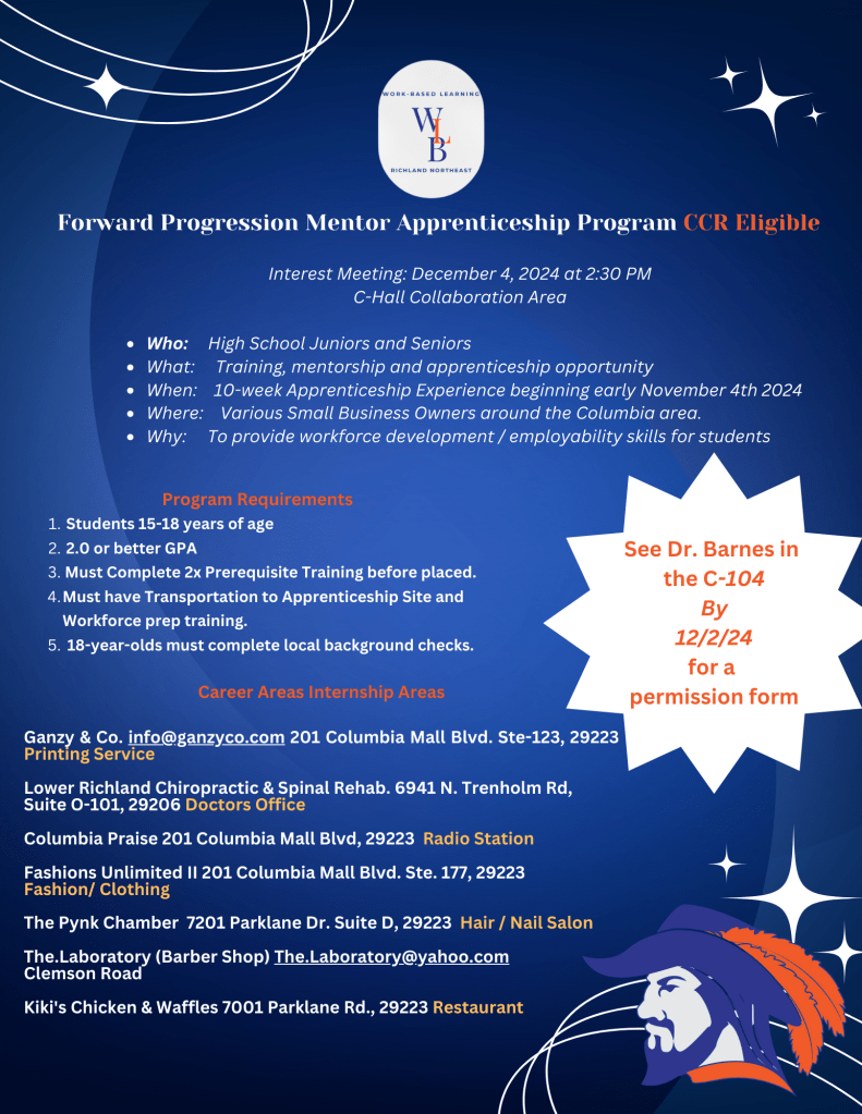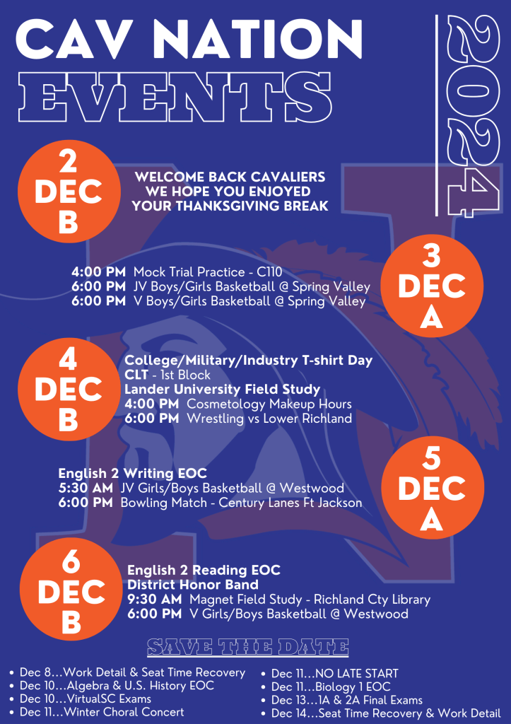 December 2, 2024 December 2, 2024November 26, 2024 Richland Northeast HS Welcome Back!!! We hope you had a wonderful Thanksgiving Break!! This Week in CAV Nation Don’t Forget to See Dr. Barnes TODAY These mentorships also helps students recieve their College & Career Readiness (CCR) status. Share this: Click to share on X (Opens in new window) X Click to share on Facebook (Opens in new window) Facebook Like Loading...
