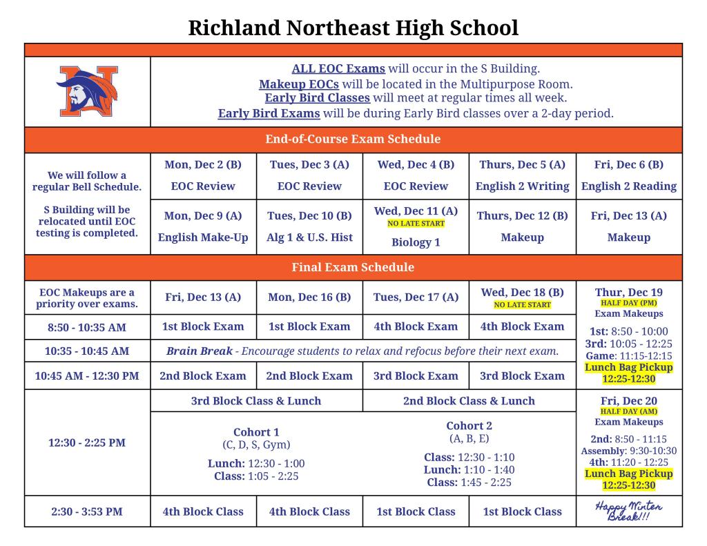 That is correct. All 1A and 2A course exams begin today. If missed your Algebra 1, Biology 1, English 2, and/or U.S. History EOC, you must report to the Multipurpose Room at 9:00 AM. Remember all exams count 20% of your final average. So please do your best. If you are making up an EOC please bring your fully charged, school-issued Chromebook and charger the Multipurpose Room. Good luck on your exams.