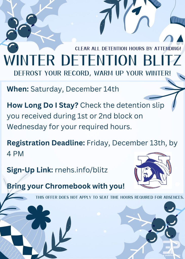December 14, 2024 December 14, 2024December 13, 2024 Richland Northeast HS Have You Signed Up? Don’t forget to sign up for Seat Time Recovery as well. This will be our last Saturday this semester to clear Detention Hours & recover excessive absences. Share this: Click to share on X (Opens in new window) X Click to share on Facebook (Opens in new window) Facebook Like Loading...