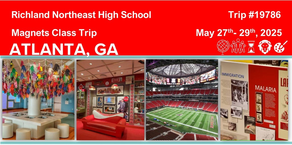 RNE Magnet students have the opportunity to embark on a thrilling 3-day journey to Atlanta, GA filled with exciting and educational adventures that complement classroom learning. Cost of trip includes roundtrip motor coach