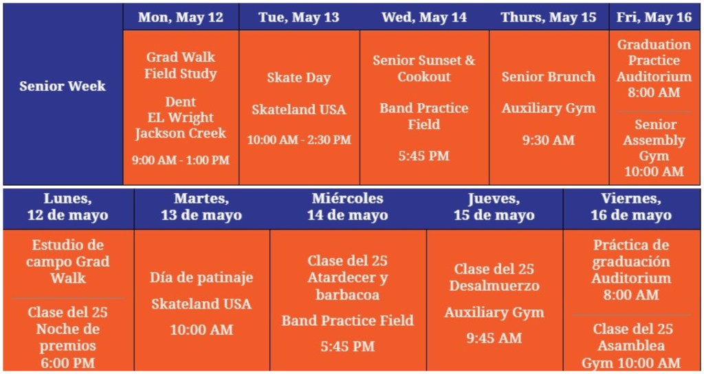 Participating in Senior Week Activities that occur during the day does not count as an absence.