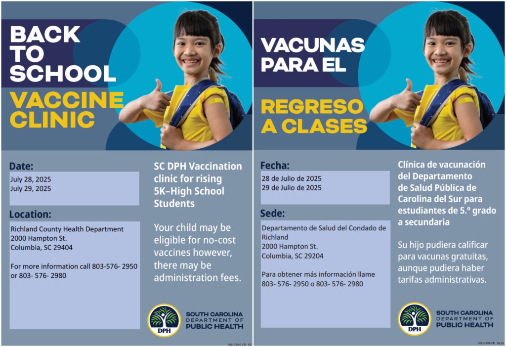 July 19, 2025 July 19, 2025July 16, 2025 Richland Northeast HS Get Your Vaccinations Before School Begins APPOINTMENTS ARE REQUIRED. For more information, call 803-576-2950 or 803-576-2980All students entering the 7th grade in August 2025 are REQUIRED to have a Tdap/ whooping cough shot after the age of 10. Share this: Click to share on X (Opens in new window) X Click to share on Facebook (Opens in new window) Facebook Like Loading...