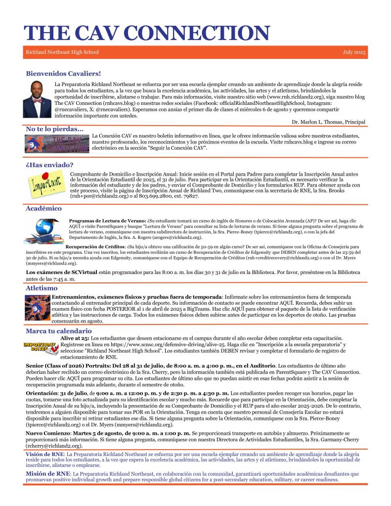 July 25, 2025 July 25, 2025July 24, 2025 Richland Northeast HS Back to School Newsletter Boletรญn de regreso a clases Share this: Click to share on X (Opens in new window) X Click to share on Facebook (Opens in new window) Facebook Like Loading...