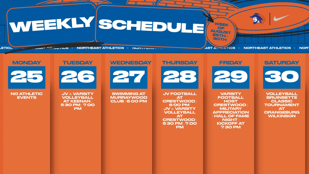 August 27, 2025 August 27, 2025August 28, 2025 Richland Northeast HS It’s Spirit Week…BBQ Dads vs Soccer Moms Dress in Your Best Gear Today NJROTC Parent Night, Tonight CitiTrends Is Hiring Must be 18 or older to apply. Bilingual applicants are needed. REMINDER: Athletic Events This Week Job Opportunity Now Available Share this: Click to share on X (Opens in new window) X Click to share on Facebook (Opens in new window) Facebook Like Loading...