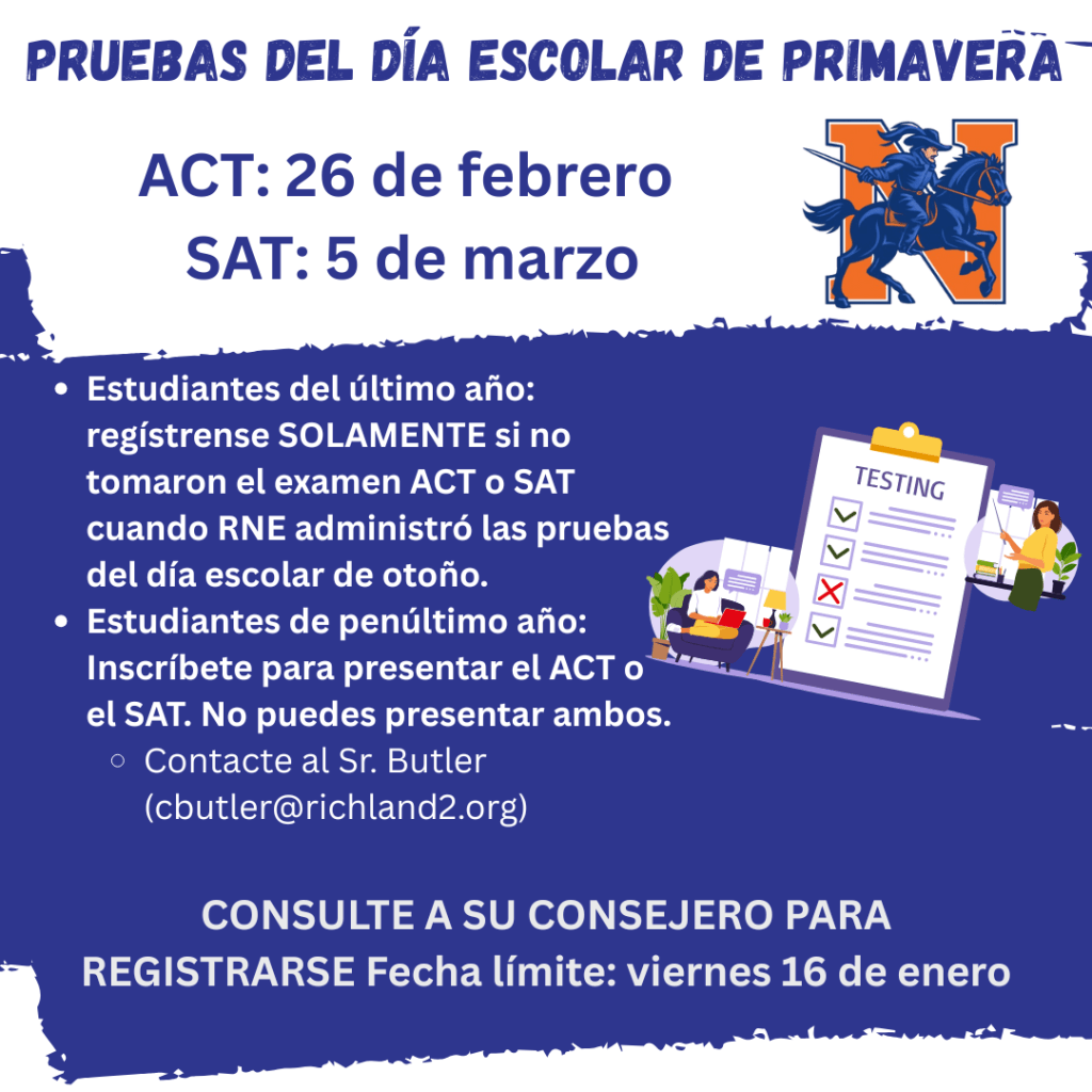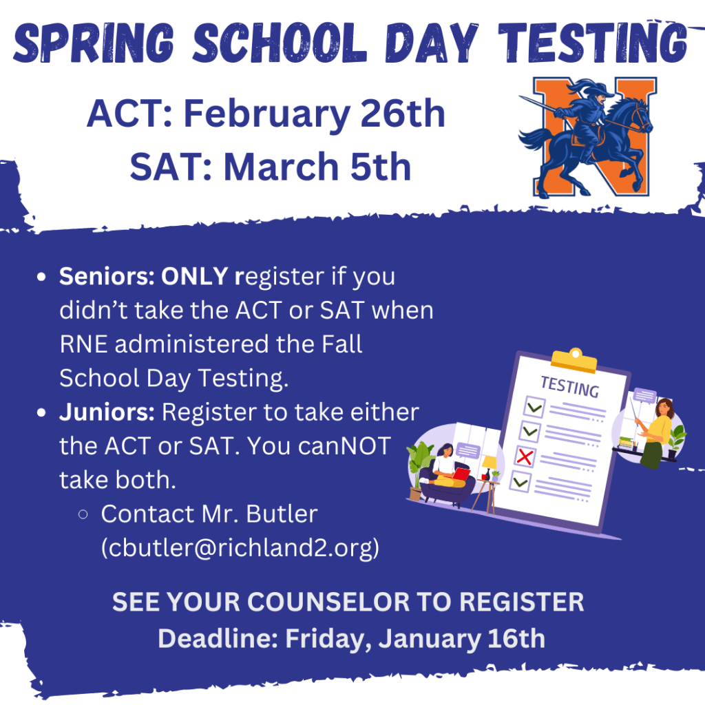 - ACT, SAT, WIN: Mr. Butler (cbutler@richland2.org).