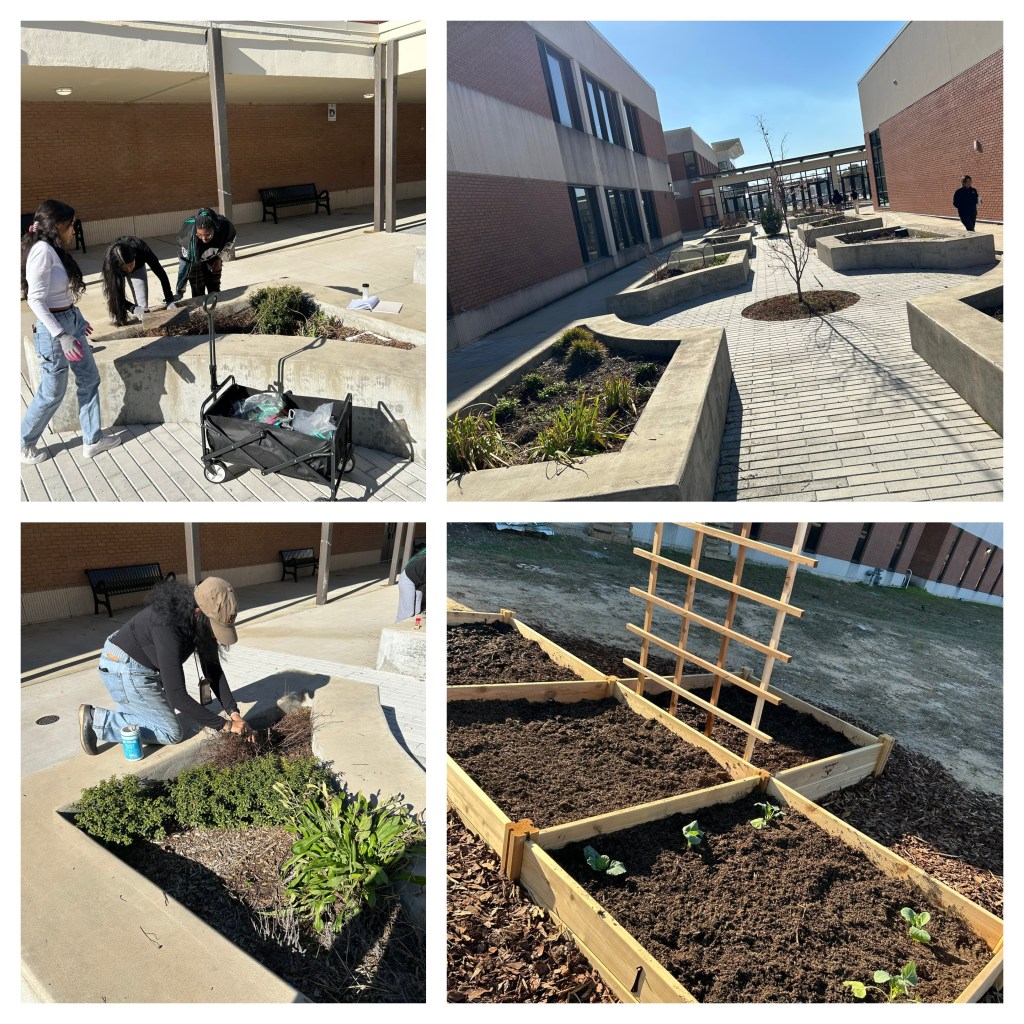 Yes, it’s that time. Several of our Environmental Science students are preparing Shakespeare’s Garden for the Spring. They also are working on the garden that will be in the back of S building. Everyone enjoyed the beautiful day as made connections while pulling weeds and planting seeds. Thank you Ms. Norris-Jones for providing this opportunity.